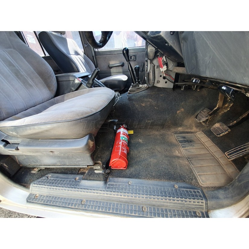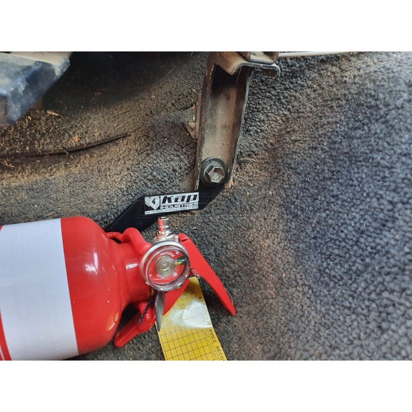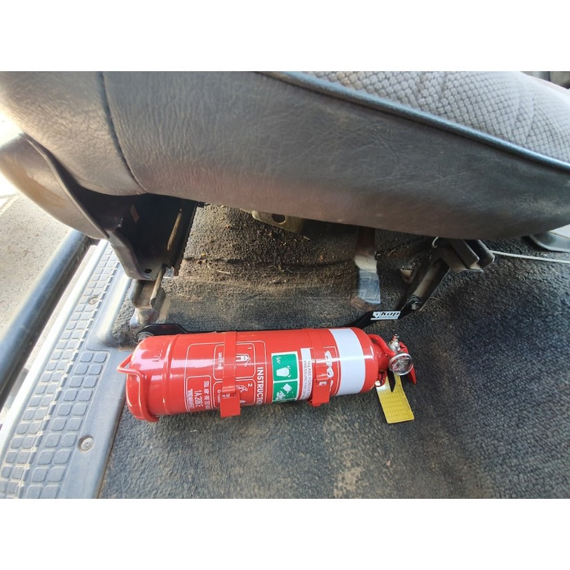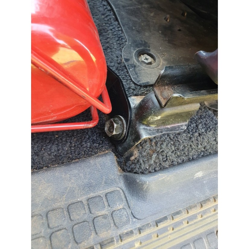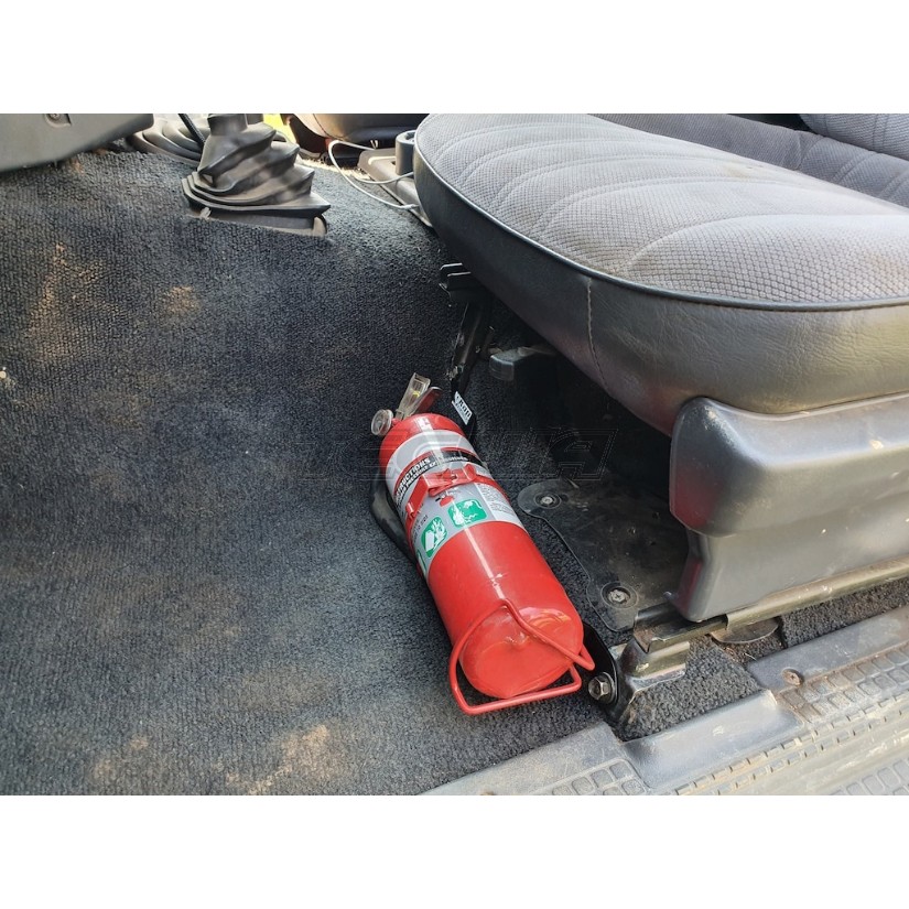 The bracket fits the Nissan Patrol GQ perfectly. Keeping a Fire Extinguisher at arms reach is very smart when out 4WDing or just regular commuting.