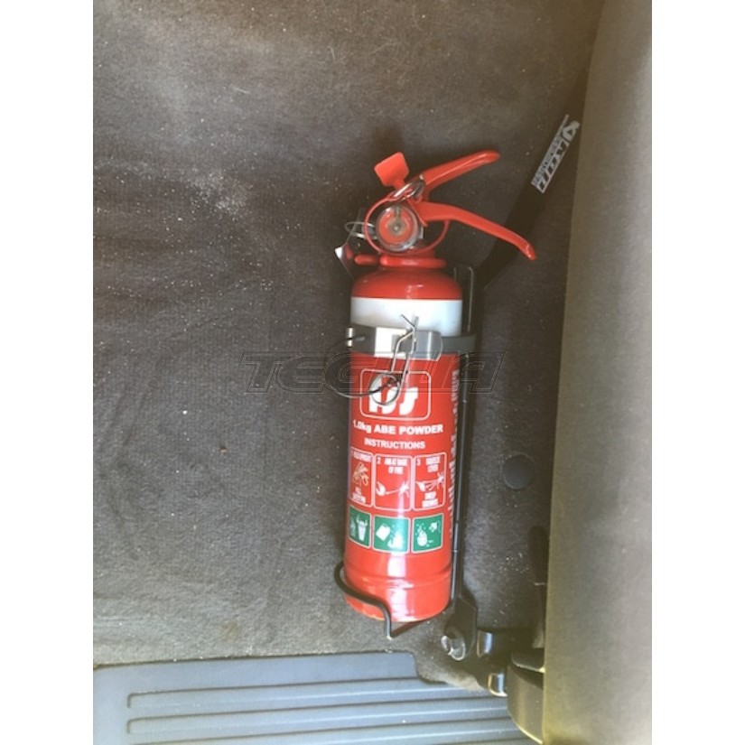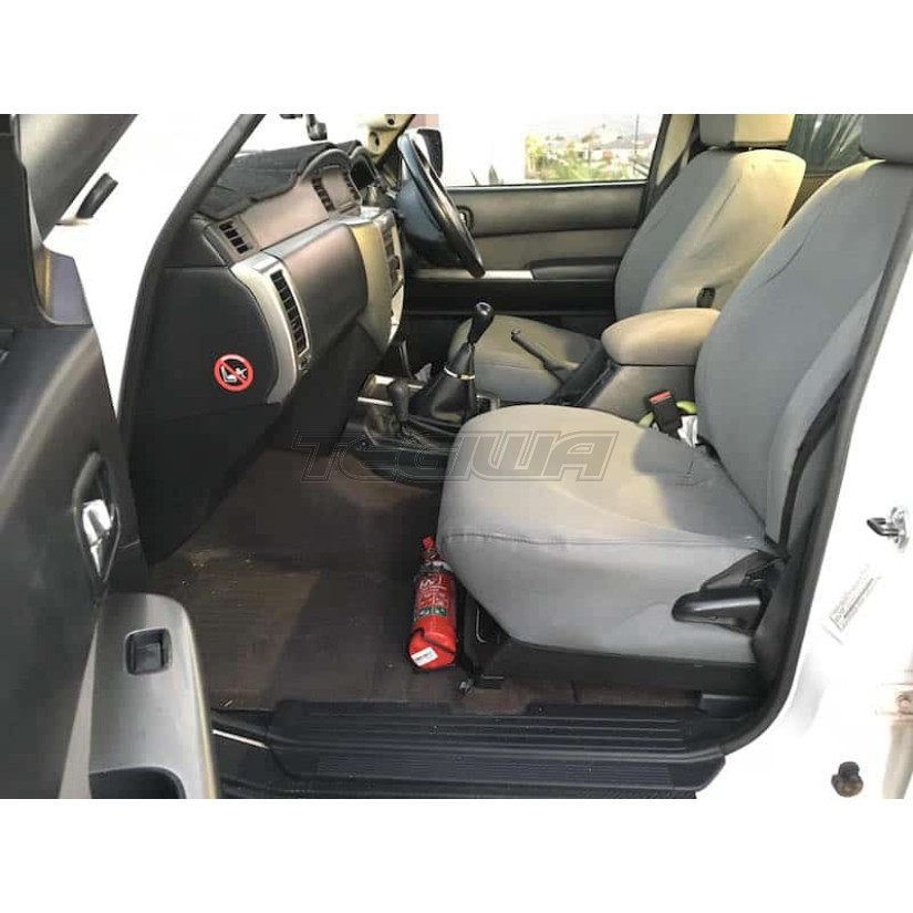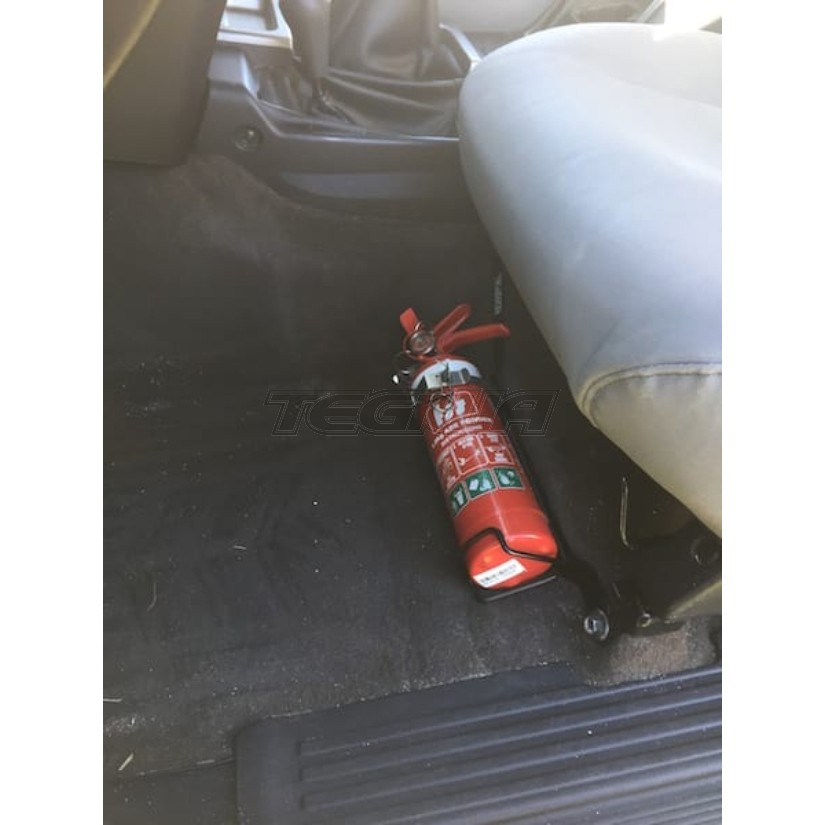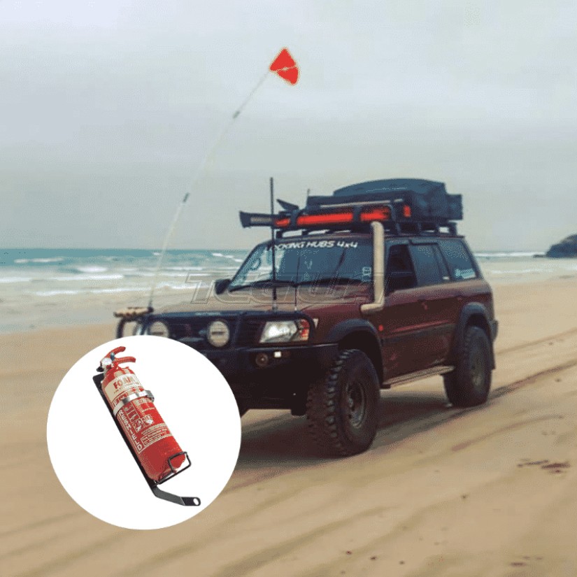 The bracket fits the Nissan Patrol GU. Looks great with full seat movement. Keeping a Fire Extinguisher at arms reach is very smart when out 4WDing or just regular commuting.