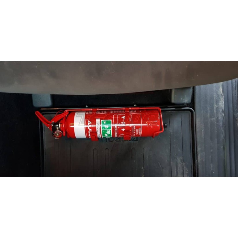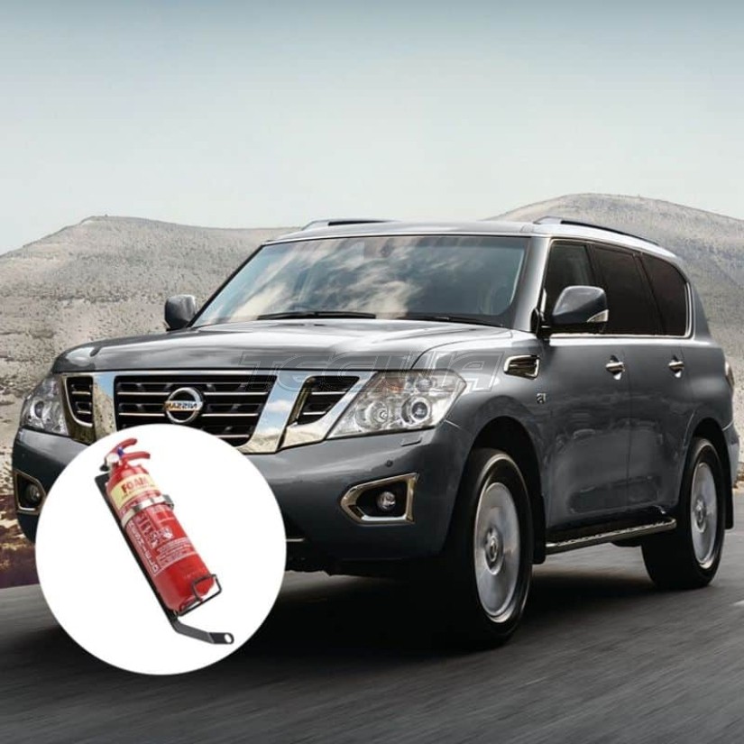 The bracket fits the Nissan Patrol Y62 Left Hand Side side perfectly. Looks great with full seat movement. Keeping a Fire Extinguisher at arms reach is very smart when out 4WDing or just regular commuting.