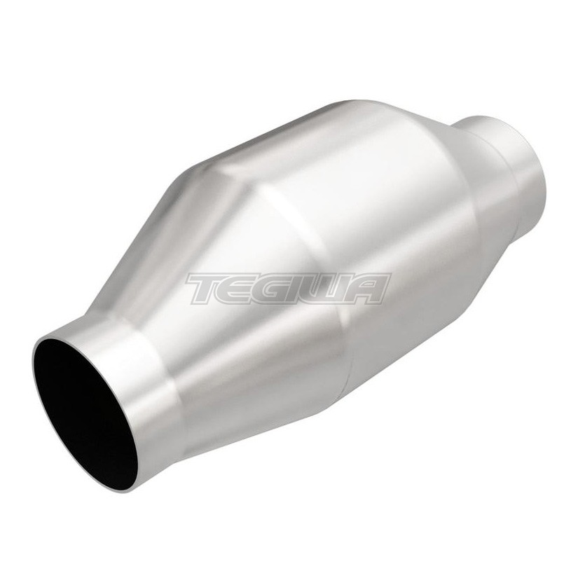 MAGNAFLOW Cat. Universal Spun Metallic Catalytic Converter. MagnaFlow Performance Exhaust has spun body catalytic converters utilising the revolutionary new metallic catalyst technology. Using new manufacturing technology, Magnaflow fabricates each converter body from single CNC-formed and laster welded tubular section, which is then spun into a round converter body shape. Each converter is literally manufactured around the metallic catalyst, which is securely tucked inside, and necks down to thicker gauge material at the inlet/outlet for maximum durability. The catalyst is a spirally wound ultra thin metallic foil.