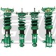 The Tein Flex-Z range are incredible, height adjustable coilovers made with Tein's famous "Made in Yokohama" quality. Considering the use of larger tires/wheels and the lowered ride height, FLEX Z uses twin-tube system, in pursuit of ride comfort on streets. In order to maintain the ride quality on streets with rough spots here and there, a shock absorber has to have sufficient stroke, be low-frictional and move smoothly. As an oil chamber and a gas chamber are not arranged serially in a twin-tube system, it is easy to secure enough stroke. Also, low gas pressure keeps friction low. Its smooth stroke movement makes it possible to follow rough and bumpy road surfaces quite well, offering supple ride at low speed and stable ride at high speed.