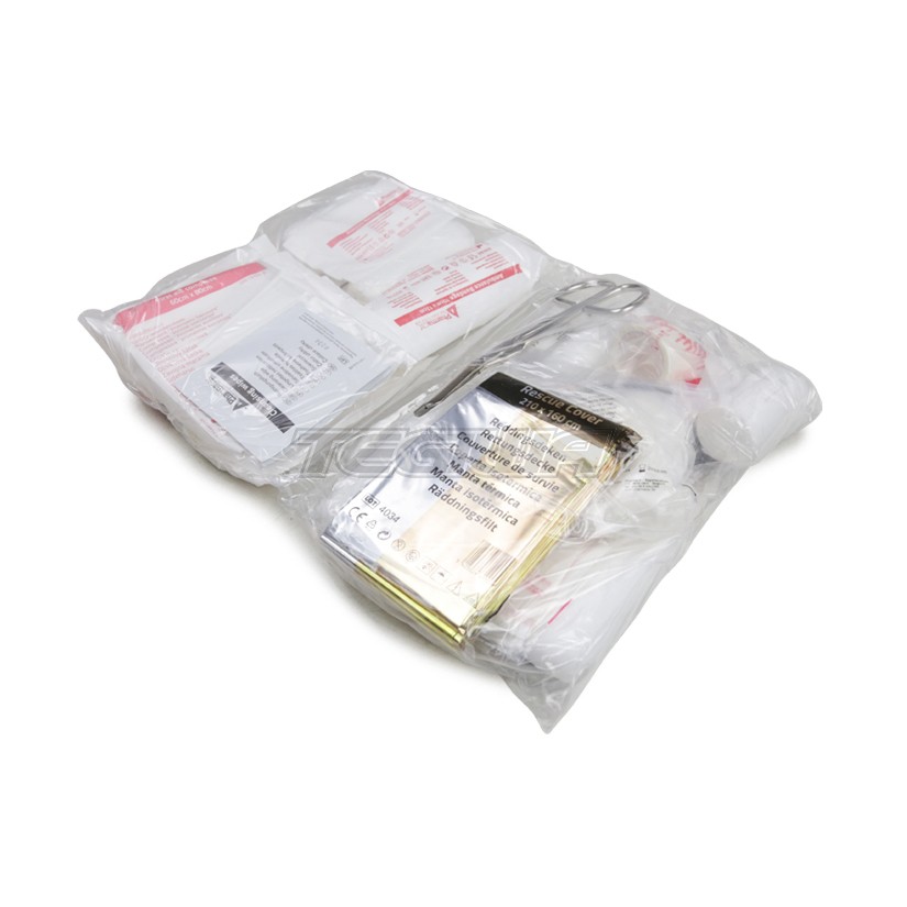 Includes: bandages, adhesive bandages, dressing, scissors, gloves, first aid instructions & Honda-branded pouch. 5 year shelf life.