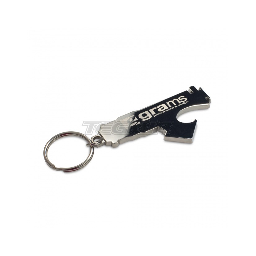 Grams Performance & Design fuel injector inspired Bottle Opener Key-Chain features a black chrome finish with the Grams performance & Design logo laser etched on both sides.