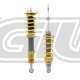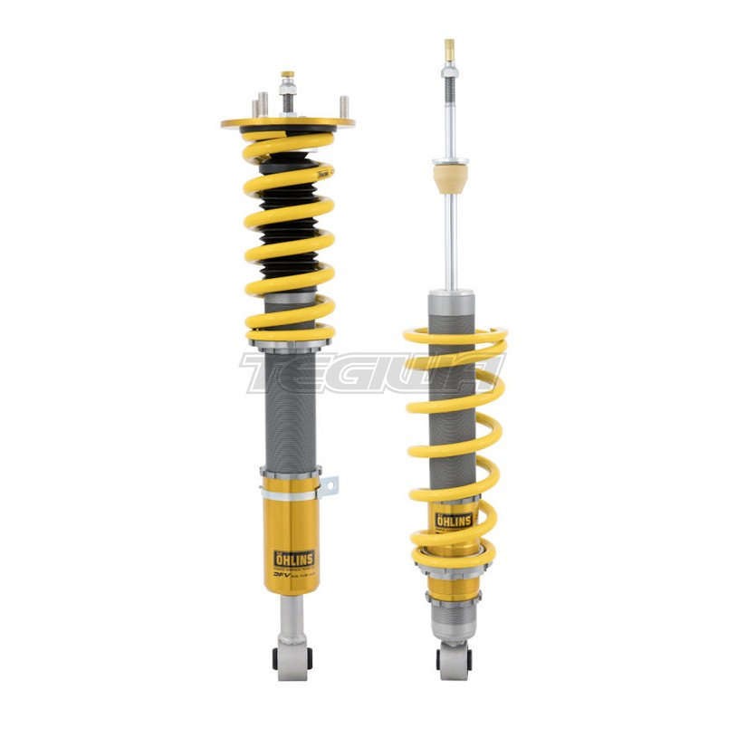 Many of the applications available are ride height adjustable without affecting the fitted length and preload of the spring, although spring preload can also be adjusted. A unique feature on the Ohlins Road &| Track dampers is the Dual Flow Valve (DFV) technology. This additional valve supports the basic function of the main piston by allowing increased oil flow through ports in the DFV with sudden damper accelerations. This translates to a more supple ride on uneven road surfaces and harsh high damper speed impacts. The one way adjuster allows simple changes between firm and soft settings via the adjuster.