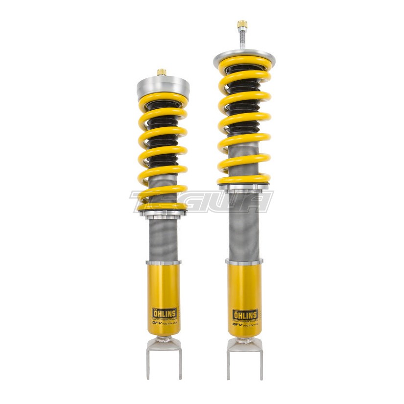 Many of the applications available are ride height adjustable without affecting the fitted length and preload of the spring, although spring preload can also be adjusted. A unique feature on the Ohlins Road &| Track dampers is the Dual Flow Valve (DFV) technology. This additional valve supports the basic function of the main piston by allowing increased oil flow through ports in the DFV with sudden damper accelerations. This translates to a more supple ride on uneven road surfaces and harsh high damper speed impacts. The one way adjuster allows simple changes between firm and soft settings via the adjuster.