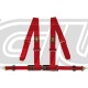 4 point harness, 3 shoulder straps with racing steel adjusters, and 2 lap belts, snap hook attachment. Central push button release. Waist load spreader pad. Supplied with 7/16 eyebolts. ECE homologated.