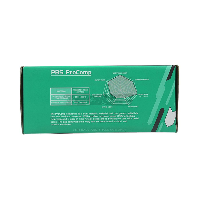 Performance Brake Solutions manufacture high performance brake pads for track and race use . These pads are made by racing drivers for racing drivers, working at high temperature with excellent pedal feel, consistent braking with low dust and great rotor life. These are by the far the best bang for buck pads on the market giving great consistency, longevity and bite at both hot and cold temperatures. The ProComp compound is a semi metallic material that has greater initial bite that the ProRace compound. With excellent stopping power 0.55 to 0.65mu, this compound is use in the Time Attack series and is suitable for cars with pedal boxes. The pad compression is very low, so pedal travel is short and remains consistent. For race and track use only.