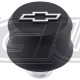 No more stamped steel breather caps for aluminum valve covers! Complete your engine dress-up look with a breather cap that actually matches your look! These new Slant-Edge aluminum push-in breather caps are available in five different finishes, and with just about every Bowtie emblem configuration imaginable: raised and milled, recessed with inlaid paint, the unique recessed/raised blackfield, and even no emblem at all. The vivid 3D Bowtie emblem gives this 2.5 inch diameter breather cap a bold clean look that