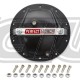Reinforced lightweight aluminum rear end covers designed to strengthen the rear housing case in heavy torque situations. The PERFECT LAUNCH® logo is prominently displayed on a precision milled surface. Each cover includes two bolts to stabilize bearing main caps, fluid capacity and magnetic drain plugs, and mounting bolts. All covers have a black painted finish.