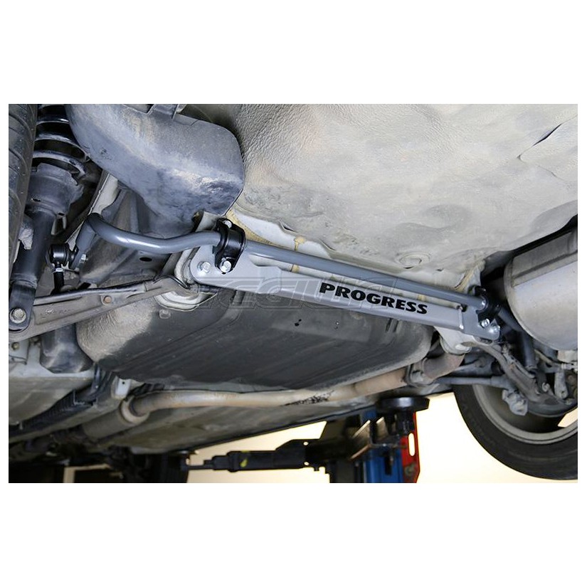 Progress anti-sway bars dramatically improve handling. How? They minimize the traction-robbing body 'lean' that rolls part of the outside tires off the pavement. Our Sport-tuned Anti-sway bars replace skinny OEM bars and rubber bushings with larger diameter (stiffer) alloy steel bars and polyurethane bushings. More roll stiffness means less body "lean", and the tires stay flatter on the pavement (larger contact patches). The result is more grip and added driver control!