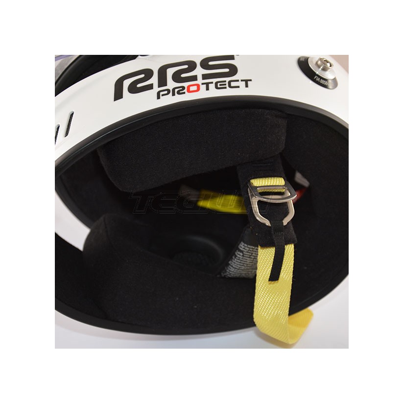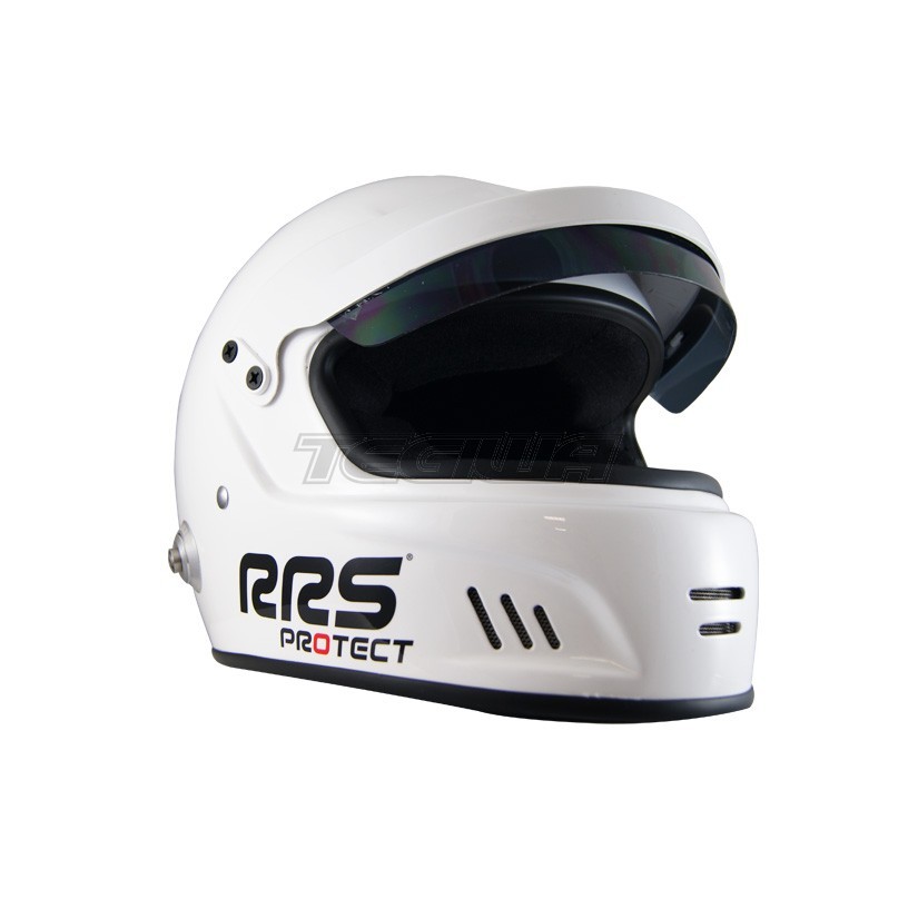 Full face RRS Protect Rally helmet in compliance with FIA 8859-2015 and SNELL SA2020 approved.