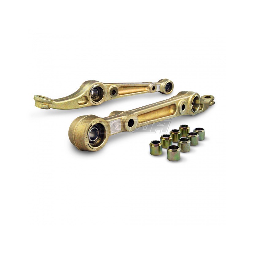 Skunk2 Racing Front Lower Control Arms are recommended for no-nonsense track cars or extreme performance streetcars. For maximum suspension performance, Skunk2 Front Lower Control Arms are best complemented with Skunk2 Pro Series Camber Kits, Coilovers, and Strut Tower Bars.