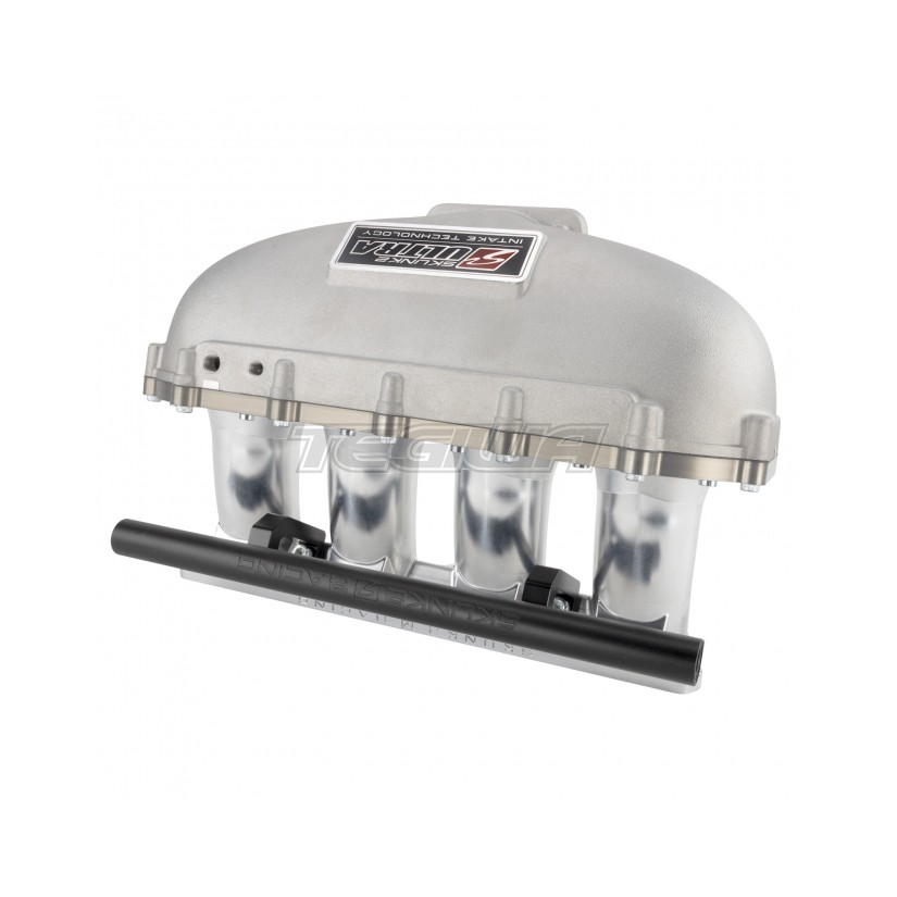 The manifold features the same Skunk2 Ultra high flowing runners and modular plenum design. The modular design allows plenum volume to easily be increased using simple spacers, and the runners can also be freely ported for additional flow and volume. The versatility of this manifold allows enthusiasts and engine builders to tune the manifold combination to best suit their needs.
