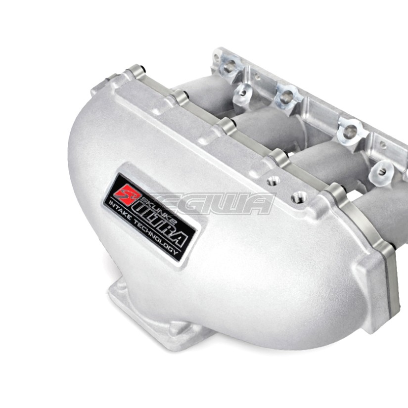 Skunk2 Ultra Series Centerfeed Intake Manifolds are available for Honda/Acura B and K-Series engines. Made from high-grade 356 aluminum for a strong and lightweight design, a 90mm throttle body opening with Ford bolt pattern and dual fuel rails for extreme HP needs. Plenum volume increases available with 1L and 2L spacers, modular design for ease of porting and tapped with 1/8” and 1/4” NPT for all accessories. Available as a complete manifold kit or plenum only.