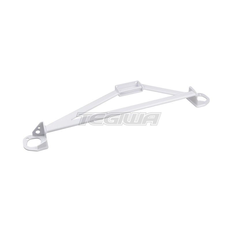 TEGIWA Front Brace. The 3-point design of these strut braces offers greatly improved structural rigidity over the more common 2-point braces. Chassis flex is therefore at an all time low, greatly improving handling, and thanks to the lightweight aluminium material used, they wont detrimentally add to your Hondas curb weight. Finished powdercoated in white or black, this brace will provide some subtlety and class to your engine bay. Suitable for both RHD and LHD cars.