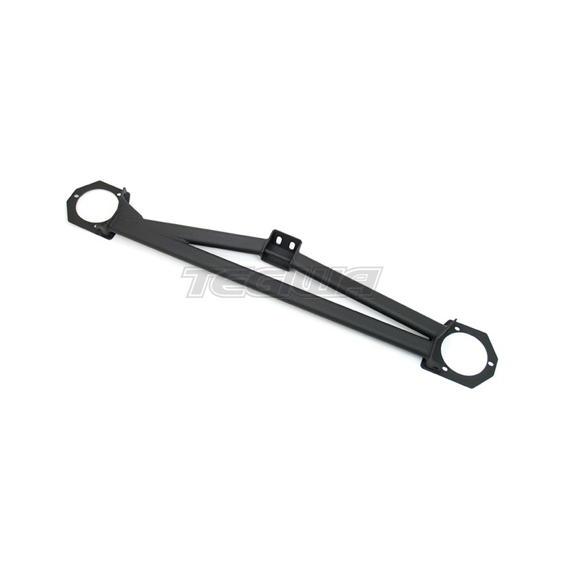 TEGIWA Front Brace. The 3-point design of these strut braces offers greatly improved structural rigidity over the more common 2-point braces. Chassis flex is therefore at an all time low, greatly improving handling, and thanks to the lightweight aluminium material used - weighing just 2.2kg, they wont detrimentally add to your Mitsubishi's curb weight. Finished powdercoated in black, this brace will provide some subtlety and class to your engine bay. Suitable for both RHD and LHD cars.