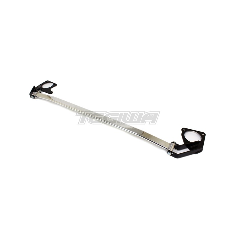 TEGIWA Front Brace. The strut bar features a polished main bar and powdercoated steel brackets. The left bracket includes a hole for installing an engine torque damper and it will clear both the TEGIWA and Gruppe-M airbox. The 2-point design of the strut braces offers greatly improved structural rigidity over a standard Civic. Chassis flex is therefore at an all time low, greatly improving handling. The brace will also provide some subtlety and class to your engine bay. Suitable for both RHD and LHD cars.