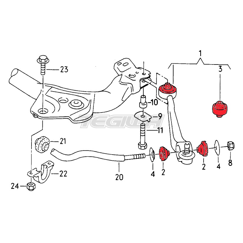 Black set for both front wishbones (left + right) of polyurethane bushings.