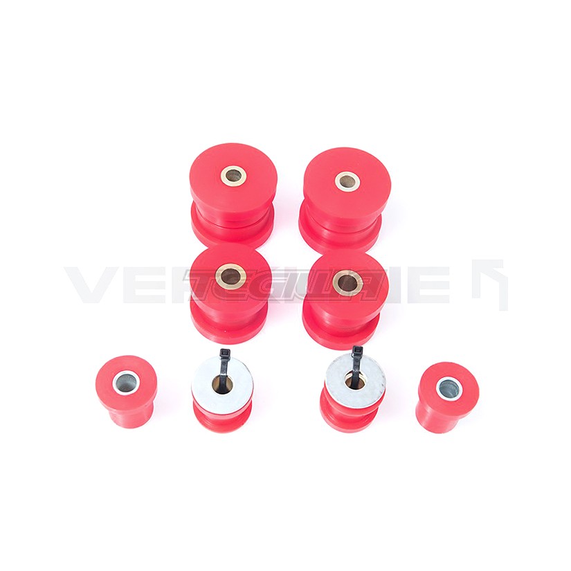 Red set for both rear wishbones (left + right) of polyurethane bushings.