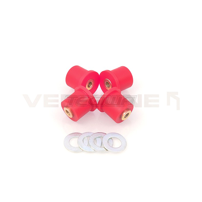 Set for one axle (both left and right hand sides included) of polyurethane bushings. For front and rear you need to sets.