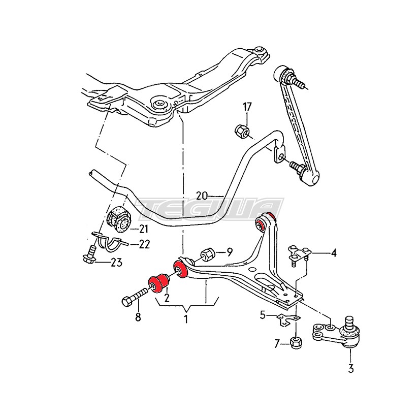 – four red polyurethane bushings