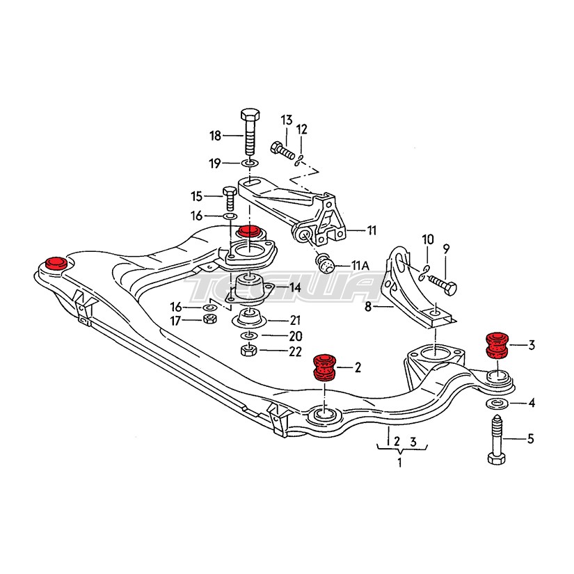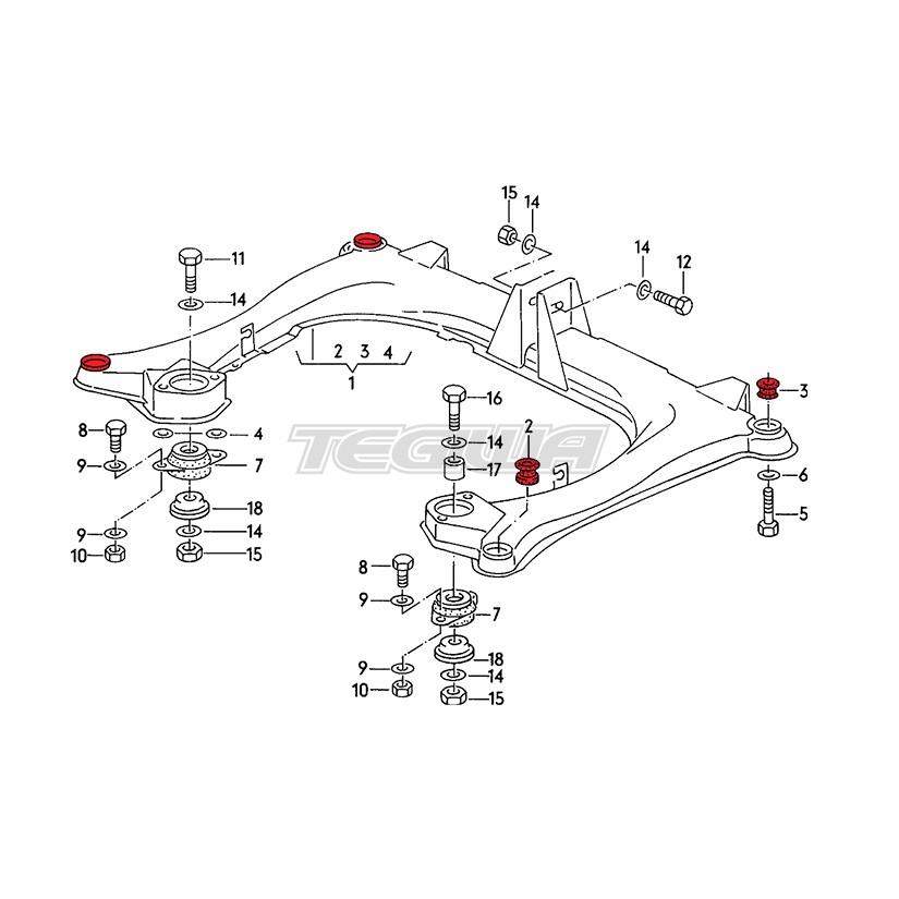 Set for one subrame of Polyurethane Subframe Bushings – size M12.