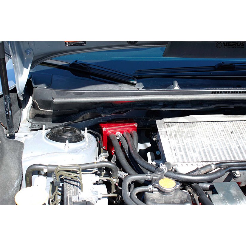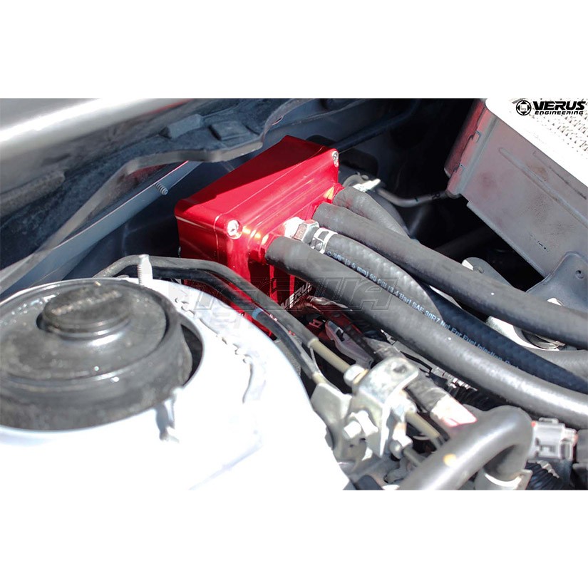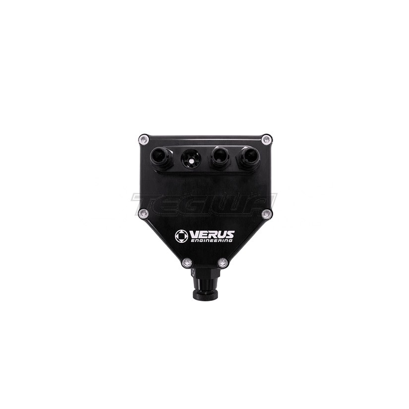 The Verus Engineering Air Oil Separator (AOS) ensures the intake system remains oil-free. Oil in the intake system reduces octane, which can lead to detonation, reduction in power, and carbon build-up. The unit installs like an OE component with no change to the tune or setup needed. The Verus AOS also filters both the crankcase vent location as well as the intake filter location, through a single unit.