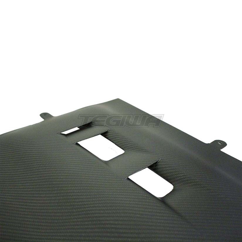 These units are produced from pre-preg carbon fiber off of a machined billet mold. No expense was spared in the production of these tunnel covers. Included in the cover are a low drag evacuation duct for heat evacuation, and two low drag NACA ducts to aid in cooling the transmission.