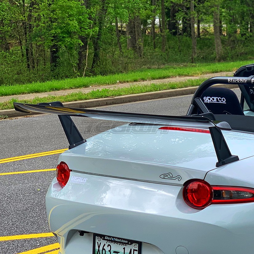 The low drag force produced by this wing is perfect for the ND chassis due to the limited horsepower it produces in stock form. This means corner speeds will increase without a large hit to straight-line top speed or MPG on the street.