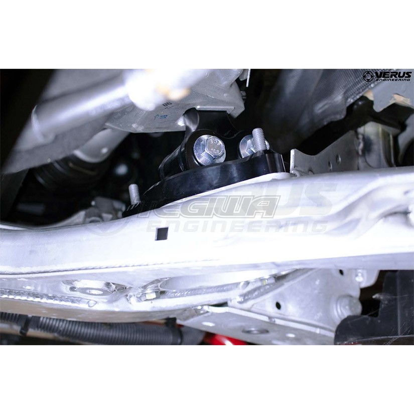 The Verus Engineering Toyota Supra Motor Mount greatly increases the rigidity of the drivetrain for a more motorsports driving experience. The factory mounts are extremely compliant and results in a vague feeling when driven hard. This movement also means that during hard decel and accel events, the motor is rocking back and forth instead of transmitting power to the ground. These units are great for track day or drag race guys that are looking for a more solidly mounted engine for better power delivery.